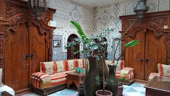 Das Ryad Bab Berdaine ist eine charmante Unterkunft in Meknès, nur 15 Gehminuten vom Stadttor Bab Mansour entfernt. Mit seiner traditionellen marokkanischen Einrichtung, dem freundlichen Personal und dem herrlichen Blick auf die Medina bietet das Hotel eine authentische und komfortable Erfahrung. Genießen Sie das kostenlose WLAN, das kontinentale Frühstück und die Möglichkeit, lokale oder internationale Küche im Speisesaal oder auf der Terrasse zu probieren. Die 24-Stunden-Rezeption steht Ihnen für alle Ihre Bedürfnisse zur Verfügung, von Touren bis hin zu Flughafentransfers.