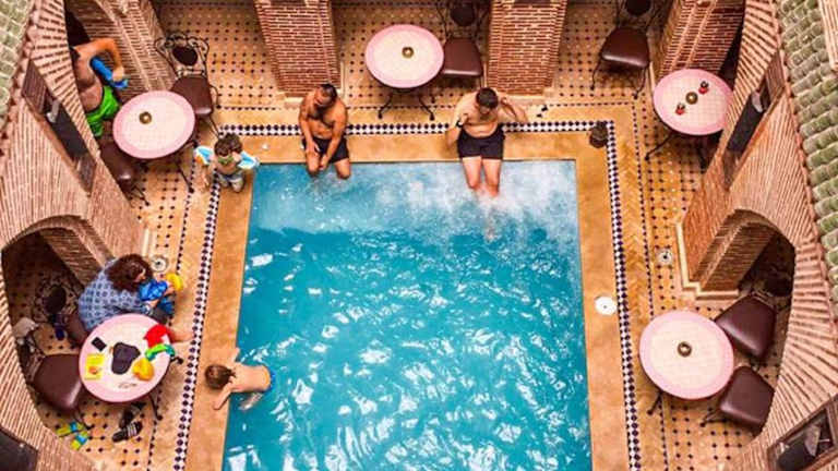 Im Riad Challa Hotel & Spa können Sie sich im Innenpool erfrischen und auf den Liegestühlen und Sonnenschirmen entspannen. Das Hotel bietet auch ein Spa mit Dampfbad und Massageanwendungen, um Ihnen eine erholsame Zeit zu ermöglichen.