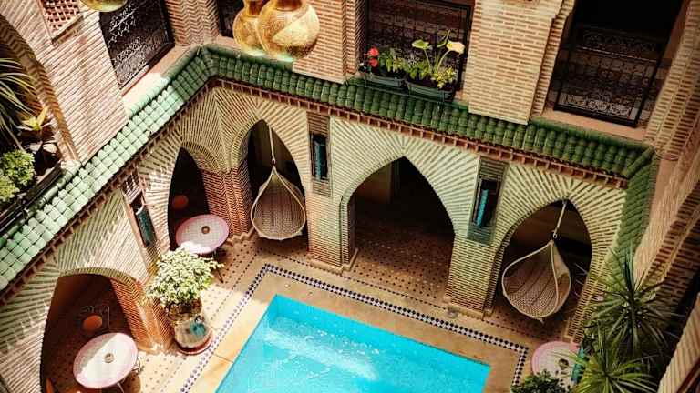 Das Riad Challa Hotel & Spa in Marrakesch ist der perfekte Ort für einen erholsamen und luxuriösen Aufenthalt. Genießen Sie den Blick auf den Pool, entspannen Sie im Wellnesscenter und lassen Sie sich von der freundlichen und hilfsbereiten 24-Stunden-Rezeption betreuen. Das Hotel bietet auch eine günstige Lage, nur wenige Gehminuten vom Markt Djemaa el Fna und dem Souk in der Altstadt entfernt.