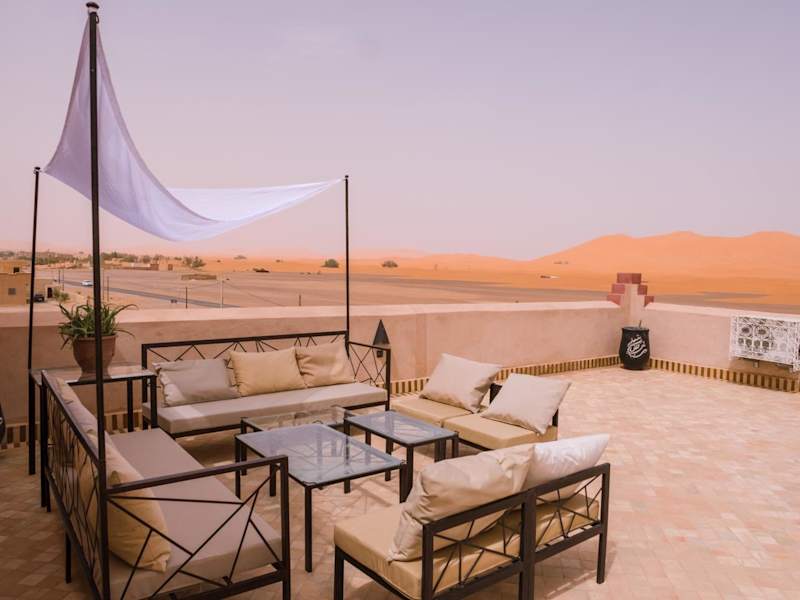 Das Riad Chebbi in Merzouga ist eine charmante Unterkunft, die mit ihrem Außenpool, dem schönen Garten und der gemütlichen Terrasse zum Entspannen einlädt. Das freundliche Personal steht Ihnen rund um die Uhr zur Verfügung und bietet Ihnen einen ausgezeichneten Service. Die Zimmer sind komfortabel und stilvoll eingerichtet und bieten eine Terrasse mit herrlichem Ausblick auf die Stadt. Genießen Sie ein köstliches Frühstück mit verschiedenen Optionen und lassen Sie sich im Restaurant mit marokkanischer und regionaler Küche verwöhnen. Die Lage des Riad Chebbi ermöglicht Ihnen eine Vielzahl von Aktivitäten wie Skifahren und Autovermietung.