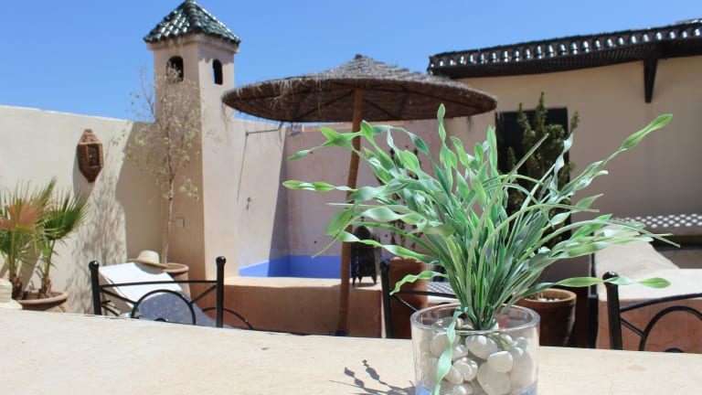 Das Hotel Riad Dar Ftouma in Marrakesch bietet seinen Gästen eine charmante Unterkunft mit 6 Zimmern. Hier können Sie in einer entspannten und ruhigen Atmosphäre die Schönheit der Stadt Marrakesch erleben. Das Hotel verfügt über Annehmlichkeiten wie einen Außenpool, einen Garten und eine Bibliothek. Das freundliche Personal steht Ihnen gerne zur Verfügung und hilft Ihnen bei der Buchung von Ausflügen. Das Restaurant bietet eine Vielzahl von Gerichten, darunter auch glutenfreie und vegetarische Optionen.