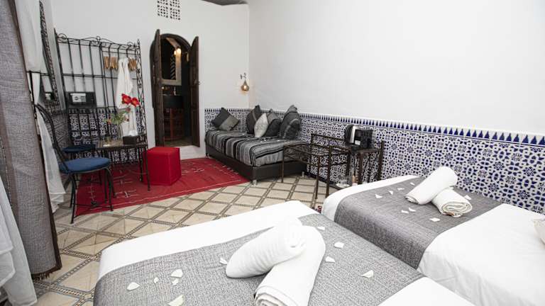Das Dar Khmissa Riad & Spa in der Medina von Marrakesch ist ein charmantes und traditionell eingerichtetes Hotel, das eine ideale Lage bietet, um die Stadt zu erkunden. Mit einer Terrasse, einer Lounge mit Kamin und stilvoll eingerichteten Zimmern bietet es den perfekten Rückzugsort nach einem erlebnisreichen Tag. Genießen Sie die regionale Küche auf der Terrasse oder im Innenhof und lassen Sie sich von den Mitarbeitern bei der Organisation von Ausflügen und anderen Aktivitäten unterstützen.
