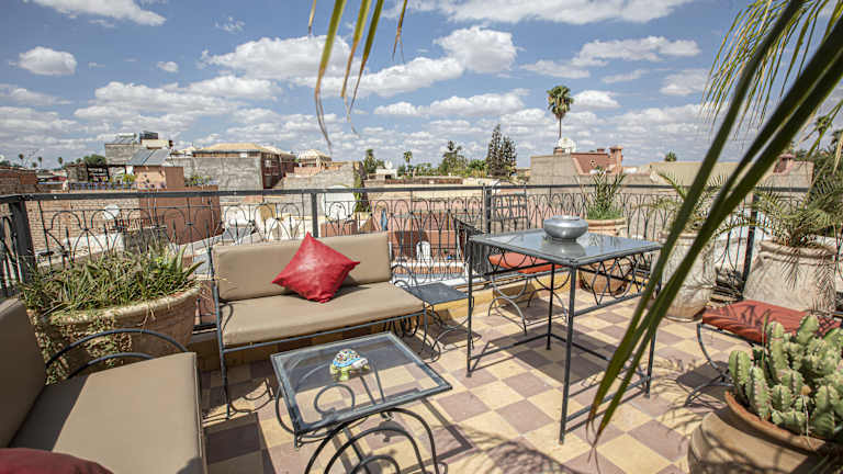 Das Dar Khmissa Riad & Spa befindet sich in der Medina von Marrakesch und ist nur einen kurzen Spaziergang vom Djemaa El Fna-Platz und der Koutoubia-Moschee entfernt. Diese zentrale Lage ermöglicht es den Gästen, die wichtigsten Sehenswürdigkeiten der Stadt bequem zu Fuß zu erreichen. Der Palais de Bahia und das Palais el Badi sind ebenfalls in der Nähe. Der Flughafen Marrakesch-Menara ist nur eine kurze Autofahrt entfernt und der botanische Garten Jardin Majorelle ist ebenfalls gut erreichbar.