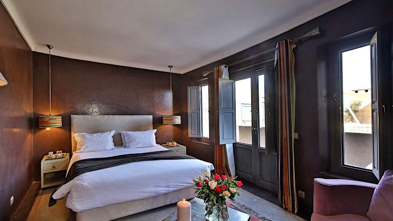 Die Zimmer im Riad Dar One sind komfortabel und funktional eingerichtet. Die Einrichtung ist einfach und dennoch stilvoll, mit besonderem Augenmerk auf Details wie Lampen und Vorhängen. Die Zimmer bieten einen angenehmen Rückzugsort nach einem erlebnisreichen Tag in der Stadt. Jedes Zimmer ist individuell gestaltet und verfügt über Annehmlichkeiten wie kostenfreies WLAN und eine Klimaanlage.
