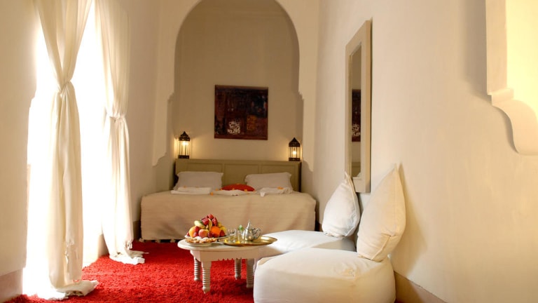 Das Hotel & Spa Dar Sara in Marrakesch bietet Ihnen eine ideale Lage, nur 10 Gehminuten vom berühmten Platz Jamaa El Fna entfernt. Hier können Sie in einer entspannten Atmosphäre den Blick von der Dachterrasse auf den Stadtteil Medina genießen. Entspannen Sie sich im traditionellen Caïdale Zelt oder im Spa mit Hamam, Innenpool und Massageraum. Die Zimmer kombinieren zeitgenössisches Design mit marokkanischer Einrichtung und bieten einen komfortablen Rückzugsort nach einem erlebnisreichen Tag. Starten Sie den Tag mit einem Frühstück im Innenhof, Salon oder auf der Dachterrasse und genießen Sie die traditionelle marokkanische Küche im Hotelrestaurant. Das Hotel & Spa Dar Sara bietet außerdem eine 24-Stunden-Rezeption und eine gute Anbindung an öffentliche Verkehrsmittel, so dass Sie Marrakesch und seine Sehenswürdigkeiten leicht erkunden können.
