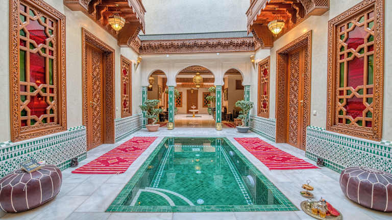 Riad Diamond Of Marrakech & Spa bietet klimatisierte Zimmer, einen Garten, eine Gemeinschaftslounge sowie kostenloses WLAN. Die Unterkunft verfügt über einen Innenpool und eine Terrasse. Zu den Dienstleistungen gehören Zimmerservice, Conciergeservice und die Organisation von Tours.