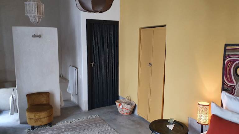 Die Suiten im Riad First sind in einem zeitgenössischen Stil eingerichtet und verfügen über klimatisierte Räume mit traditionellen marokkanischen Elementen wie Zellige-Böden und Tadelakt-Wänden. Jede Suite ist stilvoll gestaltet und bietet ein eigenes Badezimmer mit Bademantel, Haartrockner und kostenfreien Pflegeprodukten. Kostenloses WLAN ist ebenfalls vorhanden.