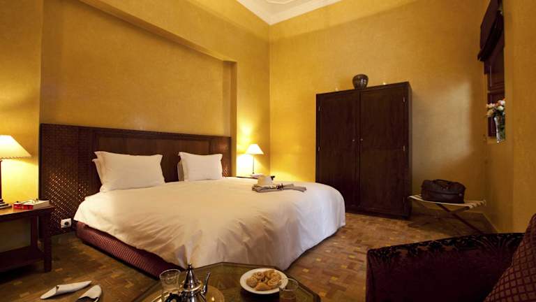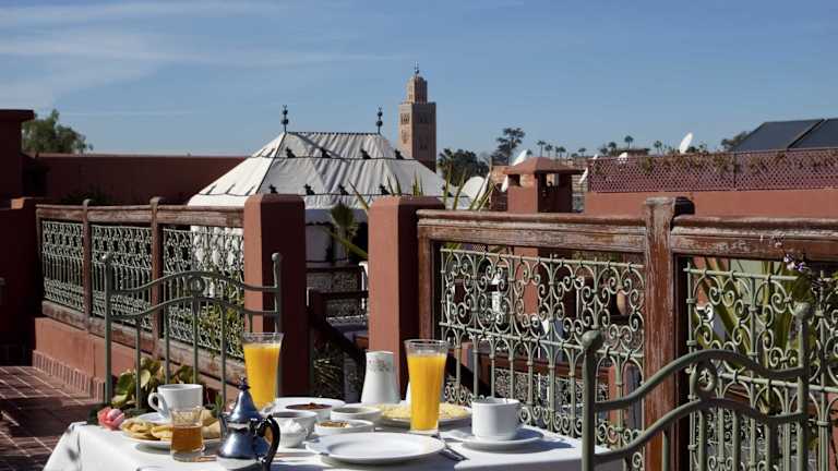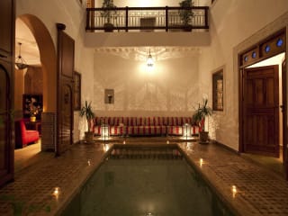 Das Riad Les Bougainvilliers ist eine charmante Unterkunft im Herzen von Marrakesch, nur wenige Gehminuten vom Djemaa el Fna Platz und den Souks entfernt. Das Hotel bietet eine entspannte Atmosphäre, eine Dachterrasse mit Blick auf die Medina und 2 Innenhöfe, in denen Sie sich in einem Tauchbecken oder am Springbrunnen erfrischen können. Die Zimmer verbinden marokkanischen und modernen Stil und bieten einen Sitzbereich sowie eine Aussicht auf den Innenhof. Morgens können Sie ein traditionelles marokkanisches Frühstück auf der Terrasse, in der Lounge oder bequem auf Ihrem Zimmer genießen. Das Hotel bietet kostenfreies WLAN, eine Gepäckaufbewahrung und eine 24-Stunden-Rezeption, die gerne Besichtigungen für Sie organisiert.