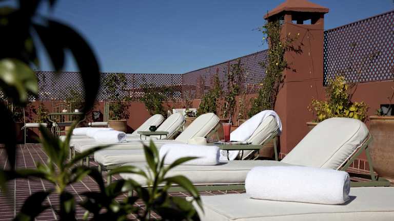 Das Riad Les Bougainvilliers verfügt über einen Außenpool, in dem Sie sich an warmen Tagen erfrischen können. Die Dachterrasse mit Blick auf die Medina lädt zum Entspannen ein. Das Hotel bietet auch ein Spa mit verschiedenen Wellness-Angeboten wie Massagen und einem Hammam. Für Kinder gibt es ein buntes Spiele- und Unterhaltungsprogramm.