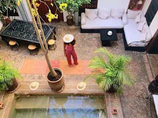Das Riad Les Nuits de Marrakech bietet einen Swimmingpool mit einem Whirlpool, in dem Sie sich entspannen und erfrischen können. Auf der Terrasse mit Sitzbereich können Sie den Blick auf die Medina und die Umgebung genießen. Erkunden Sie die Stadt und entdecken Sie die faszinierenden Sehenswürdigkeiten von Marrakesch.
