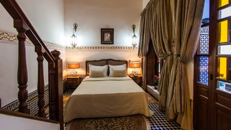 Das Riad Les Remparts De Fès bietet Ihnen einen malerischen Aufenthalt innerhalb der Stadtmauern von Fès, mit einem herrlichen Panoramablick auf die Medina. Die traditionell eingerichteten Suiten im marokkanischen Stil verleihen dem Riad eine authentische Atmosphäre. Genießen Sie das kontinentale Frühstück im Innenhof oder im Speisesaal und kosten Sie lokale Spezialitäten im Restaurant. Entspannen Sie auf der Dachterrasse, im Hamam oder bei einer wohltuenden Massage. Erkunden Sie die umliegenden Sehenswürdigkeiten wie das Museum Dar Batha und die Karaouiyne Moschee, die beide nur einen kurzen Spaziergang entfernt sind.