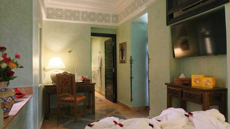 Das Riad Omara al Kasbah ist eine attraktiv gelegene Unterkunft im Herzen des Kasbah-Viertels von Marrakesch. Mit seiner Nähe zu historischen Sehenswürdigkeiten und der charmanten Atmosphäre bietet das Riad den perfekten Ausgangspunkt für eine unvergessliche Reise. Genießen Sie den Innenpool, die kostenlosen Fahrräder und den erstklassigen Service des Hotels. Die klimatisierten Zimmer sind komfortabel ausgestattet und verfügen über eine Terrasse. Beginnen Sie den Tag mit einem köstlichen kontinentalen Frühstück und probieren Sie im hauseigenen Restaurant französische und marokkanische Spezialitäten.