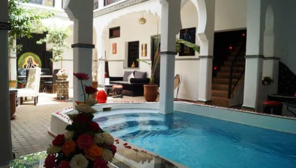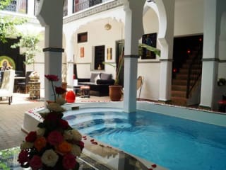 RIAD Modernes und trendiges Design ist nicht mehr für Eliten !!! Azukar ist der Ort für diejenigen, die auf der Suche nach Entdeckungen und Kuriositäten sind. Ganz in der Nähe des hektischen Djemaa el Fnaa Platzes, in einer friedlichen Nachbarschaft; Riad Azukar verfügt über 8 Zimmer en suite mit Klimaanlage, WIFI und Ipod Stationen.Azukar hat auch Wohnzimmer, Esszimmer, eine Bar und ein Schwimmbad.Azukar wurde gerade eröffnet und bietet ausgezeichnete Kundenservice wie Restaurant, Wäscherei, Concierge, etc.