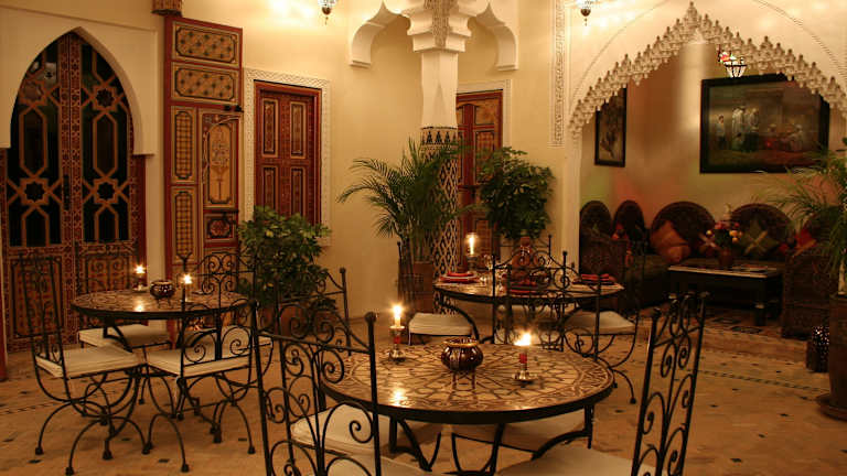 Das Riad Sofia bietet authentische marokkanische Küche für Mittag- und Abendessen. Genießen Sie die Vielfalt der Aromen und Gewürze, während Sie im Innenhof oder auf der Terrasse speisen. Das Frühstück wird ebenfalls im Innenhof oder auf der Terrasse serviert und bietet eine Auswahl an leckeren marokkanischen Spezialitäten.