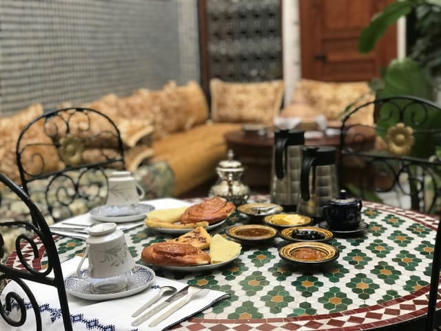 Das Riad Taj Salma bietet ein Restaurant, in dem Sie köstliche kontinentale, Halal- und glutenfreie Speisen genießen können. Beginnen Sie den Tag mit einem leckeren Frühstück und lassen Sie sich von den kulinarischen Köstlichkeiten verwöhnen, die das Restaurant bietet.