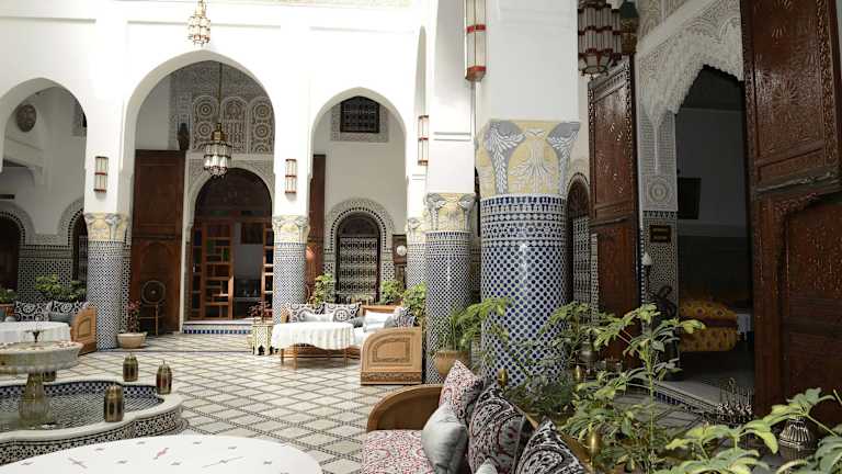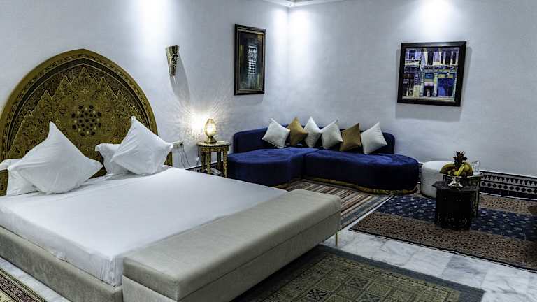 Das Riad El Yacout liegt in idealer Lage im Herzen der Medina von Fès. Die historische Stadt Fès, eine der vier Königsstädte Marokkos und die spirituelle Hauptstadt des Königreichs, ist einen Besuch wert. In der unmittelbaren Umgebung finden Sie zahlreiche Sehenswürdigkeiten, Geschäfte und Restaurants. Der nächste Flughafen ist Fez und etwa 12 km vom Riad entfernt.