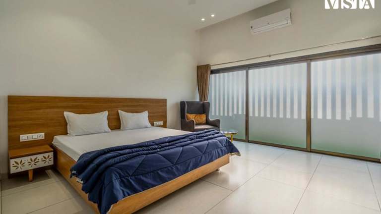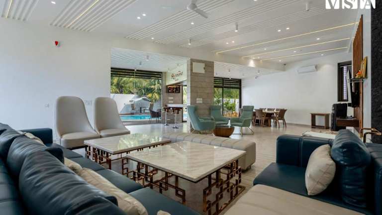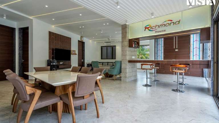 StayVista's Richmond House ist eine Unterkunft, die Komfort und Annehmlichkeiten in einem ruhigen Ambiente bietet. Die Anlage verfügt über einen Garten sowie einen Außenpool, der ganzjährig nutzbar ist. Die Räumlichkeiten sind klimatisiert und bieten kostenfreies WLAN für die Gäste. Besonderen Wert wird auf Hygiene und Sicherheit gelegt, mit Maßnahmen zur Desinfektion und Abstandsregelungen.