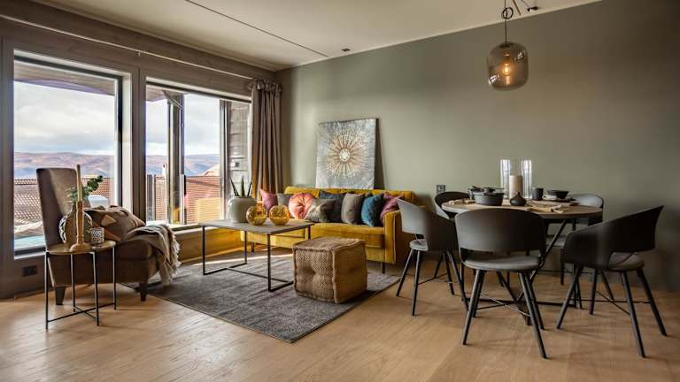 Das Riddertunet Leiligheter bietet Selbstversorgungsmöglichkeiten mit den voll ausgestatteten Küchen in den Apartments. Sie können Ihre eigenen Mahlzeiten zubereiten und auf der Terrasse entspannen. Alternativ finden Sie in der Umgebung eine Auswahl an Restaurants und Cafés, in denen Sie lokale Spezialitäten probieren können.