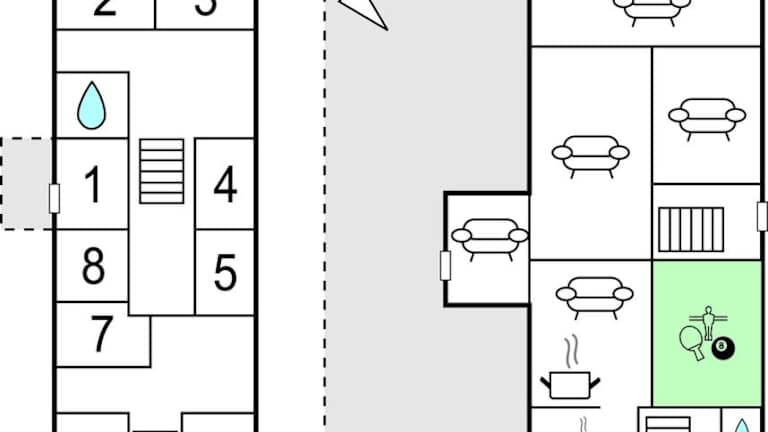 Das Ferienhaus Rimersgaard verfügt über 8 gemütliche Schlafzimmer, in denen Sie sich nach einem erlebnisreichen Tag ausruhen können. Der Wohnbereich ist mit einem Flachbild-Kabel-TV ausgestattet, damit Sie Ihre Lieblingssendungen und Filme genießen können. Die voll ausgestattete Küche bietet alles, was Sie für die Zubereitung Ihrer Mahlzeiten benötigen, einschließlich Kühlschrank, Geschirrspüler, Waschmaschine, Backofen und Mikrowelle.