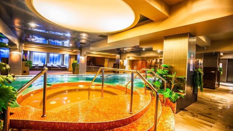 Das Hotel bietet sowohl einen Innen- als auch einen Außenpool, in denen Sie schwimmen und sich entspannen können. Ein Whirlpool im Wellnessbereich sorgt für zusätzliche Entspannung. Für Fitnessliebhaber steht ein Fitnessraum zur Verfügung. Im Wellnessbereich können Sie verschiedene Behandlungen wie Massagen und Schönheitsanwendungen genießen. Zusätzlich gibt es ein Spielzimmer, eine Bibliothek und einen Spielplatz für Kinder.