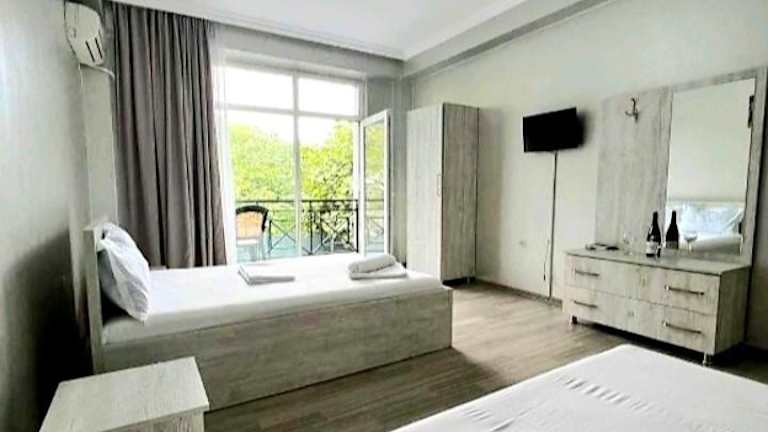 Das Hotel Rio Gonio liegt ideal in Gonio, nur 200 m vom Strand Gonio entfernt. In der Nähe finden Sie auch den Strand Kvariati, der nur etwa 500 m entfernt ist. Die Festung Gonio ist ebenfalls leicht zu erreichen und liegt nur 2 km entfernt. Die Lage der Pension bietet Ihnen somit die Möglichkeit, die schöne Küste zu erkunden und die historischen Sehenswürdigkeiten der Region zu besichtigen. Der Bahnhof Batumi ist nur 18 km entfernt und der internationale Flughafen Batumi liegt nur 12 km von der Pension entfernt.