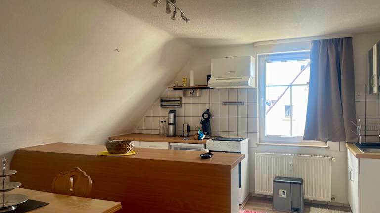Die Ferienwohnung umfasst ein Schlafzimmer, ein Wohnzimmer und eine voll ausgestattete Küche, welche unter anderem mit einem Kühlschrank und einer Kaffeemaschine ausgestattet ist. Des Weiteren gibt es ein Badezimmer mit Dusche und Haartrockner. Ein Flachbild-TV steht ebenfalls zur Verfügung.