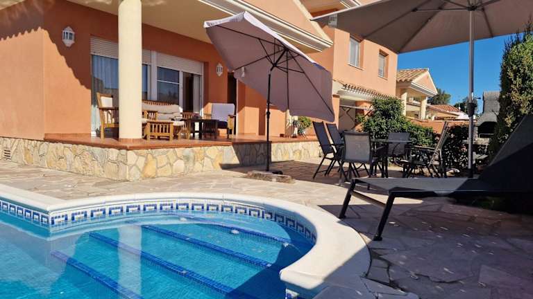 Riumar 'Estrella' beeindruckt durch ein Ferienhaus mit einem eigenen Außenpool und Gartenblick. Die Unterkunft verfügt über einen Garten, eine voll ausgestattete Küche, eine Terrasse mit Poolblick sowie kostenfreies WLAN und Parkplätze. Ein On-Site-Service steht zur Verfügung und Haustiere sind auf Anfrage erlaubt.
