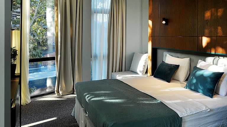 Das Hotel bietet insgesamt 24 Zimmer, die alle modern und komfortabel eingerichtet sind. Jedes Zimmer verfügt über Annehmlichkeiten wie Klimaanlage, einen Sitzbereich, einen Flachbildfernseher mit Satellitenkanälen, einen Safe und ein eigenes Badezimmer mit Bidet, kostenlosen Pflegeprodukten und einem Haartrockner. Ein Wasserkocher ist ebenfalls vorhanden, und einige Zimmer verfügen über einen Balkon mit Flussblick. Handtücher und Bettwäsche werden gestellt. Kostenloses WLAN steht den Gästen in allen Bereichen des Hotels zur Verfügung.