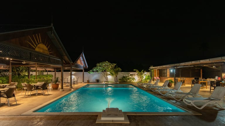 Das Hotel Riverra Inn in Kuah auf der Insel Langkawi bietet seinen Gästen eine komfortable Unterkunft mit freundlichem Service. Das Hotel verfügt über einen Außenpool und ein Kinderbecken, in dem sich die Gäste entspannen können. Ein Restaurant und ein Café sorgen für das leibliche Wohl der Gäste. Die Zimmer sind klimatisiert und bieten Annehmlichkeiten wie WLAN, einen Fernseher und einen Kühlschrank. Das Hotel bietet zudem rollstuhlgerechte Einrichtungen und Parkplätze.