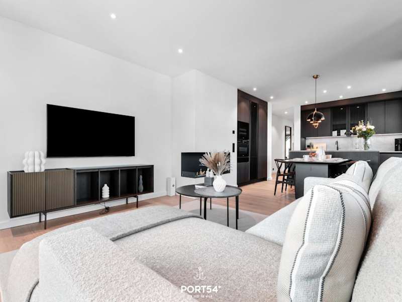 Die Ferienwohnung ist mit einem Flachbild-TV sowie einer gut ausgestatteten Küche mit Kühlschrank, Geschirrspüler und Ofen ausgestattet. Es stehen zwei Badezimmer zur Verfügung, die jeweils mit einer Dusche und einem Haartrockner ausgestattet sind.