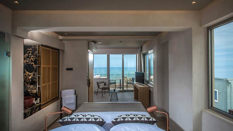 Das Riviera Boutique Hotel befindet sich direkt am Strand, sodass Sie den ganzen Tag das Meer genießen können. Der Strand Alexander und der Strand Drapano sind nur einen kurzen Spaziergang entfernt. In der Umgebung gibt es auch viele weitere Strände, die Sie erkunden können. Der internationale Flughafen Iraklio liegt etwa 28 km entfernt und bietet eine bequeme Anreisemöglichkeit.