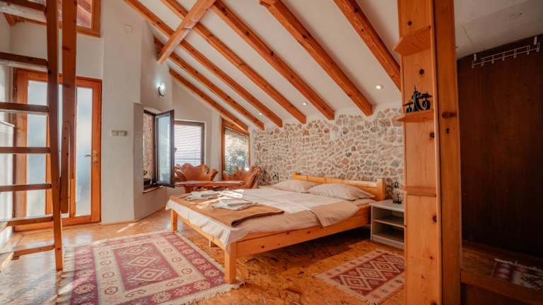 Die Robinson Sunset Guest House befindet sich in Ohrid, nur 300 Meter vom Strand Lagadin entfernt. Die Unterkunft ist von einer natürlichen Umgebung umgeben und bietet eine ruhige Atmosphäre. Knochenbucht ist 6,5 Kilometer und Plaošnik 11 Kilometer entfernt. Der nächstgelegene Flughafen ist der Flughafen Ohrid, der sich 18 Kilometer von der Unterkunft entfernt befindet.