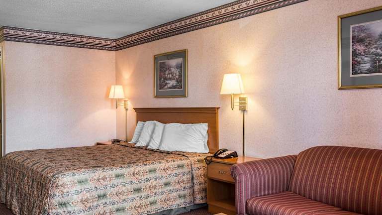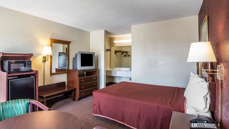 Die 78 Zimmer des Rodeway Inn Expo Center bieten den Gästen Komfort und Bequemlichkeit. Jedes Zimmer ist mit Annehmlichkeiten wie Kabel-TV, einer Mikrowelle, einer Kaffeemaschine, einem kleinen Kühlschrank und einem Bügeleisen/-brett ausgestattet. Einige Zimmer verfügen auch über eine Sitzecke. Kostenloses WLAN ist in allen Zimmern verfügbar.