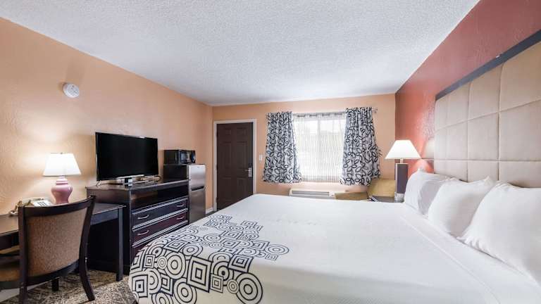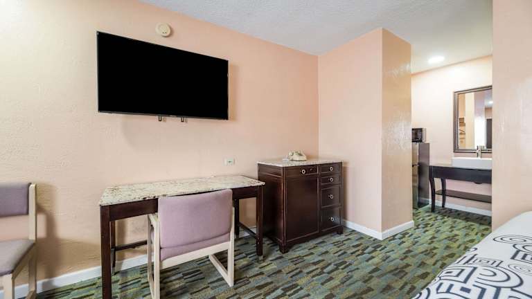 Die Zimmer im Hotel Rodeway Inn sind komfortabel und bieten Annehmlichkeiten wie eine Kochnische, eine Mikrowelle, Kaffee-/Teezubereiter, einen Fernseher und kostenloses WLAN.
