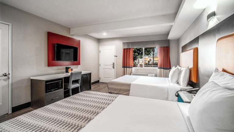 Die klimatisierten Zimmer sind funktional ausgestattet und verfügen über einen Schreibtisch, Kabel-TV, ein eigenes Bad mit Dusche sowie ggf. eine Terrasse. Zur Ausstattung gehören auch ein Kühlschrank, ein TV-Gerät und WLAN ohne Gebühr. Die Unterbringung bietet ebenfalls Nichtraucherzimmer und rollstuhlgerechte Zimmer mit barrierefreien Badezimmern.