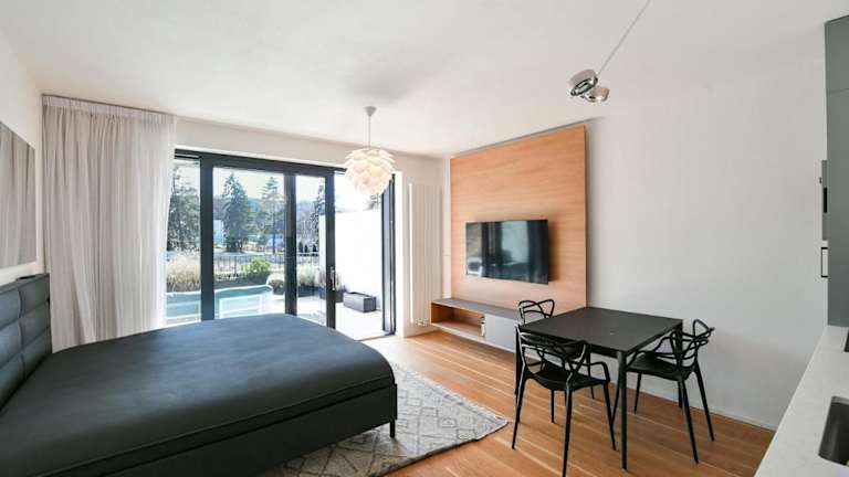Die Ferienwohnung umfasst 1 Schlafzimmer, ein Wohnzimmer sowie eine gut ausgestattete Küchenzeile mit Kühlschrank. Zur Ausstattung gehört auch ein Flachbild-TV. Die Unterkunft bietet zudem eine Terrasse.
