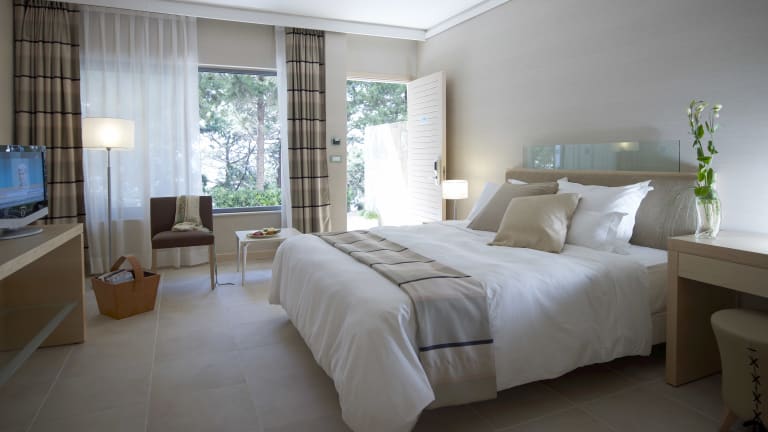 777 elegante Gästezimmer und Suiten bieten einen herrlichen Blick auf die Ägäis oder auf die üppigen Gärten und Pools. Alle Zimmer verfügen über Satelliten-TV, kostenfreies WLAN, Direktwahltelefon, Klimaanlage, Balkon oder Terrasse, Haartrockner, Bad mit Dusche, hochwertige Pflegeprodukte, Safe sowie Minibar oder Kühlschrank.
