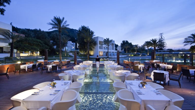 RESTAURANTS • "La Terrasse": Amerikanisches Frühstücksbuffet für Executive und VIP-Suiten von 07:00 bis 10:00 Uhr • "Pool Restaurant": Mittagessen 12: 00-18: 00 • "Ambrosia Restaurant": Frühstücksbuffet 7:00-10:00 / Mittagessen 12: 00-14:30 / Abendessen 19:00 -21:30 • "12Nissia" Restaurant: Abendessen à la carte 19: 30-21: 30 Uhr • "Room Service " 24 Stunden BARS • Amphitrion Piano Bar 10: 00-02: 00 • Yacht Pool Bar 10: 00-18: 00 • Dome Music Bar & Club mit Live-Auftritten jeden Abend (15 / 5-15 / 10) 20: 00-01: 00 • Playland Bar 17:00 - 00:00