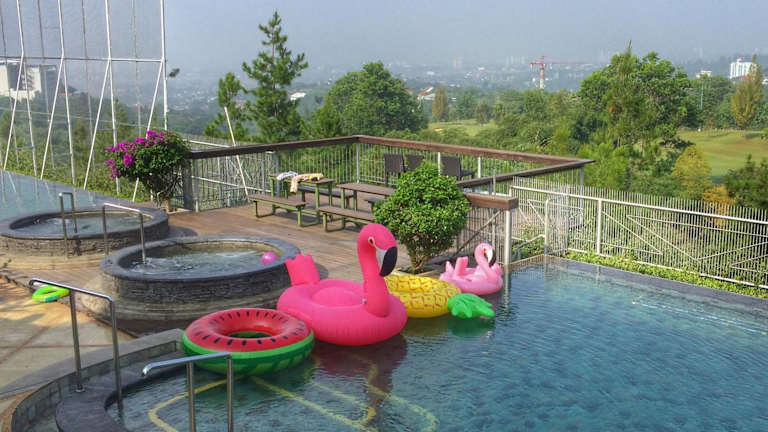 Roemah Asri Villa - Resor Dago Pakar bietet kostenloses WLAN sowie einen Garten mit einem Außenpool. Des Weiteren haben die Gäste Zugang zu einem Whirlpool.