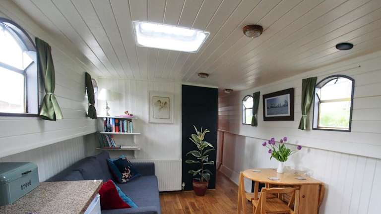 Das Roisin Dubh Houseboat bietet Ihnen eine komfortable Unterkunft mit einer voll ausgestatteten Küchenzeile, in der Sie Ihre eigenen Mahlzeiten zubereiten können. Das offene Schnittdesign der Küche und der angrenzende Sitzbereich schaffen eine gemütliche Atmosphäre. Das Boot verfügt auch über ein separates Schlafzimmer, in dem Sie sich nach einem erlebnisreichen Tag ausruhen können. Ein Badezimmer ist ebenfalls vorhanden.