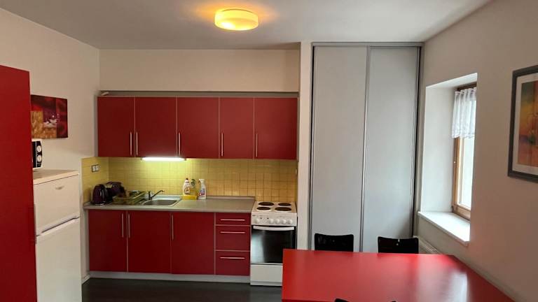 Jedes Apartment ist mit einer Küchenzeile ausgestattet, die einen Kühlschrank, Ofen, Mikrowelle, Herdplatte, Kaffeemaschine und Wasserkocher umfasst. Des Weiteren sind Bügelmöglichkeiten, ein Kleiderschrank, ein Kabel Flachbild-TV und ein Sitzbereich mit einem Schlafsofa vorhanden. Die Zimmer sind schallisoliert und bieten Zugang zur Terrasse.