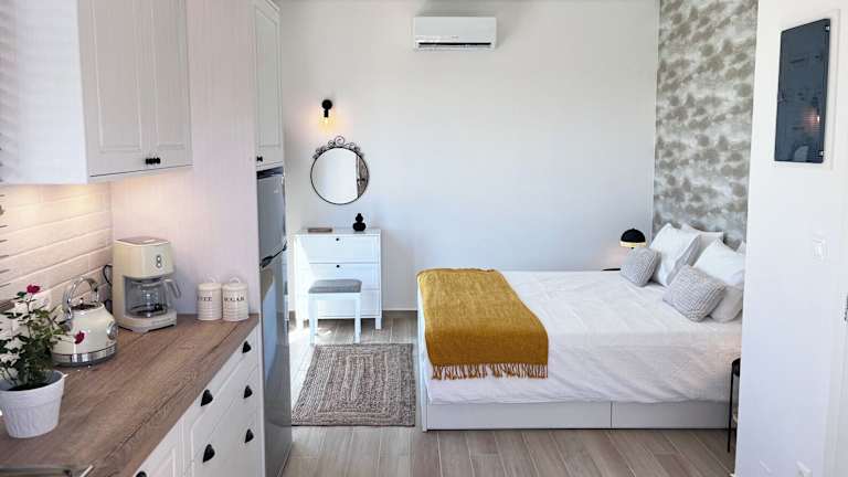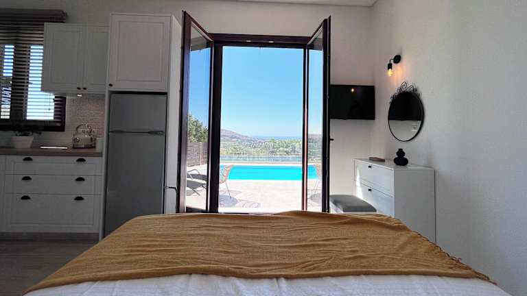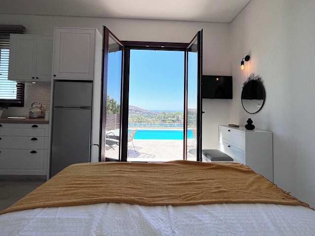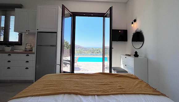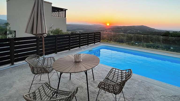 Die Villa befindet sich in der Nähe des Flughafens Iraklio, etwa 8 km entfernt. Sehenswürdigkeiten wie das Archäologische Museum Heraklion (14 km) und die Venezianischen Festungsmauern (15 km) liegen in der Nähe. Zudem wird ein Blick auf das Meer geboten.