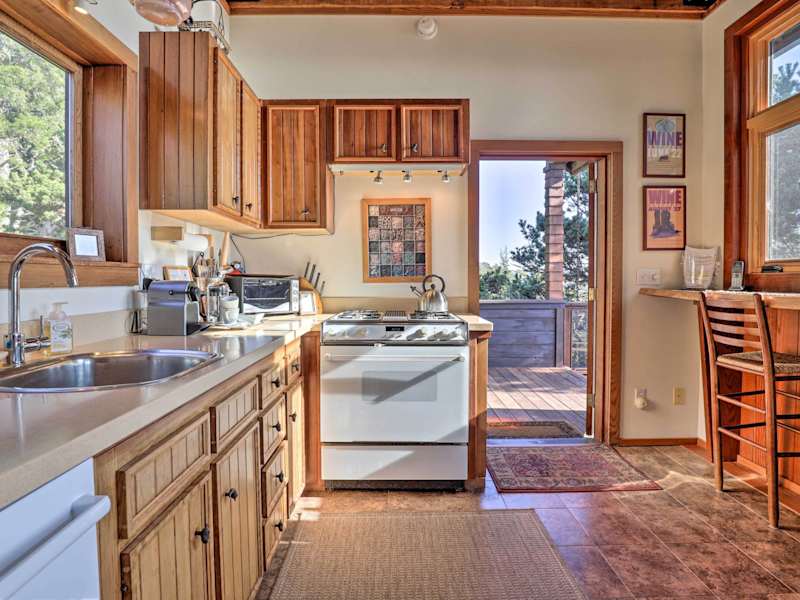 Das Romantic Ridgetop Escape with Hot Tub Near Mendocino bietet eine voll ausgestattete Küche, so dass Sie Ihre eigenen Mahlzeiten zubereiten können. Alternativ können Sie auch die umliegenden Restaurants erkunden und lokale Spezialitäten probieren.