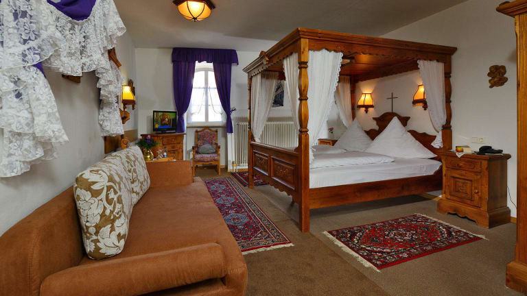 Unser Hotel bietet Ihnen 46 individuelle Zimmer. Jedes Zimmer hat seinen eigenen Charme. Vom Wasserbettzimmer bis zum König-Ludwig-Zimmer mit verspiegeltem Baldachin. Jedes Jahr renovieren wir mehrere Zimmer komplett, die Sie dann gegen einen kleinen Upgradepreis gerne zubuchen können. Unser Hotel ist das größte Einzelhotel in der mittelalterlichen Stadt Dinkelsbühl, wird aber dennoch sehr familiär und persönlich geführt. Es liegt zentral in der Dinkelsbühler Altstadt. Wir haben ein kleines Indoor-Schwimmbad mit Sauna, Dampfbad und Massagepraxis. Beachten Sie bitte, dass unser Hotel 450 Jahre alt ist und über keinen Aufzug verfügt (dieser ist aus statischen Gründen nicht einbaubar). Gerne helfen wir aber beim Gepäckservice.