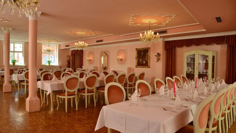 Die meisten unserer Hotelgäste haben Arrangements gebucht und lassen sich von unserer Küche mit festen 3- bzw. 4-Gangmenus verwöhnen. Selbstverständlich bieten wir vegetarische Alternativen. Allen Gäste, die bei uns übernachten ohne Arrangement und Übernachtung/Frühstück gebucht haben, bieten wir regionale frische Küche in unserem Restaurant. In der warmen Jahreszeit haben wir Ihnen eine herrliche Terrasse und einen Biergarten direkt vorm Haus auf dem 2021/22 umgebauten idyllischen Schweinemarkt geöffnet. Es gibt in den warmen Monaten täglich (Ruhetage Alacarte Mittwoch und Donnerstag) mittags und abends warme Küche von 12 bis 14 und 17:30 bis 21:30 Uhr. Unsere Biere beziehen wir vom Nürnberger Umland (Brauereien in Spalt und Gutmann-Weizenbiere) aber auch leckere Bügel-Plopp-Biere von der kleinen Dinkelsbühler Privatbrauerei Stefansbräu. Die Weingüter, die uns direkt beliefern, befinden sich in Mainfranken. Sie können online über gastrodigital oder per Telefon/Mail Ihren Tisch reservieren. Gerne berücksichtigen wir allergische Sonderwünsche. Am besten sprechen Sie uns hierzu schon bei der Buchung oder beim Check-In an. Kinderstühle, Malsachen für die Kinder, spezielle Kindergerichte halten wir selbstverständlich bereit.