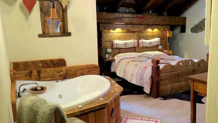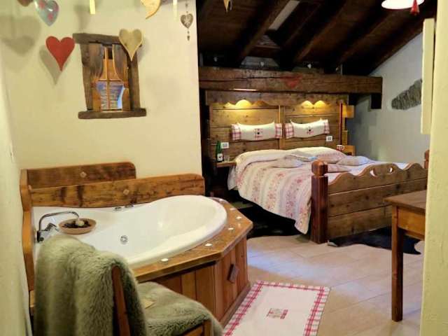 Romantica suite con vasca idromassaggio bietet Übernachtungsmöglichkeiten in einem Ferienhaus, das über einen Whirlpool verfügt. Die Unterkunft bietet direkten Zugang zu einer Terrasse, die einen schönen Blick auf die Berge ermöglicht.