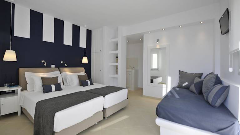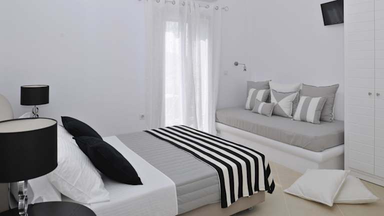 Das Romantica Suites befindet sich in einer günstigen Lage, nur 500 m vom Zentrum von Naoussa entfernt. Diese Nähe ermöglicht es Ihnen, bequem das charmante Stadtzentrum zu erkunden und die lokalen Geschäfte, Restaurants und Sehenswürdigkeiten zu entdecken. Die Hauptstadt von Paros, Parikia, ist nur 10 km entfernt und der Flughafen Paros ist in nur 20 km zu erreichen.