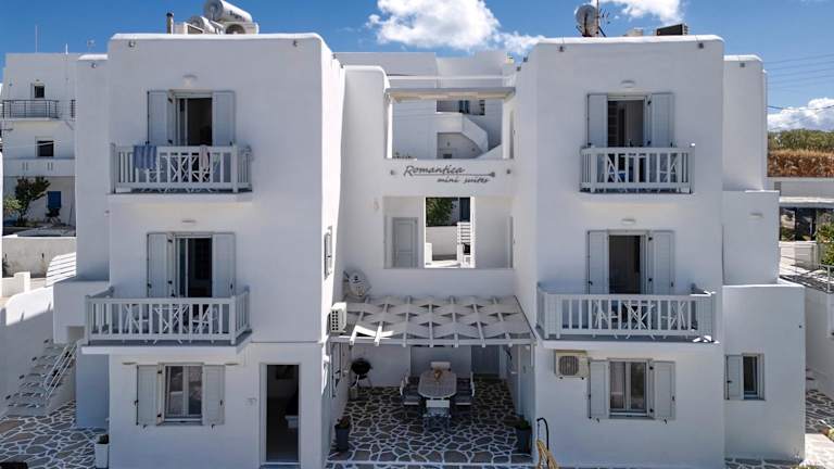 Das Romantica Suites in Naoussa bietet geschmackvoll eingerichtete Unterkünfte mit Balkon und kostenfreiem WLAN. Die modernen Suiten sind geräumig und verfügen über Annehmlichkeiten wie einen Flachbild-TV, einen Kühlschrank und einen Laptop-Safe. Einige Unterkünfte bieten auch eine Küchenzeile. Die Unterkunft bietet Massagen auf Anfrage und hilft Ihnen gerne bei der Anmietung von Autos oder Fahrrädern. Die Lage des Hotels ermöglicht es Ihnen, das Zentrum von Naoussa in nur 500 m Entfernung zu erkunden. Parikia, die Hauptstadt von Paros, ist nur 10 km entfernt und der Flughafen Paros 20 km. Kostenlose Parkplätze stehen Ihnen zur Verfügung.