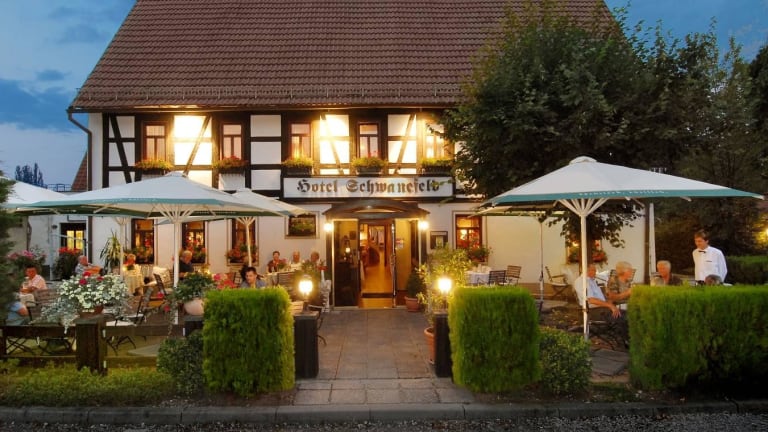 Im Restaurant Schwanefeld in eleganter gemütlicher Atmosphäre kann man die Vielfalt der Küche genießen. In der rustikalen Kutscherstube gilt allerdings die gleiche Speisekarte. Frühstücken kann man auch im Salon Nouvelle. In der angeschlossenen Villa Il Mio gibt es italienische Spezialitäten und eine Cocktailbar. Wünsche wegen Unverträglichkeiten oder Allergien nimmt der Service gern (vorher) entgegen und das Küchenteam versuchet gern diese umzusetzen. Es gibt eine Kinderspeisekarte und Zimmerkarte. Manchmal werden auch die Lobby oder Saal Dresden für die Gäste zum Abendessen genützt. Es gibt Kaffee- und Kuchen nachmittags (in manchen Angeboten enthalten), HP und VP.