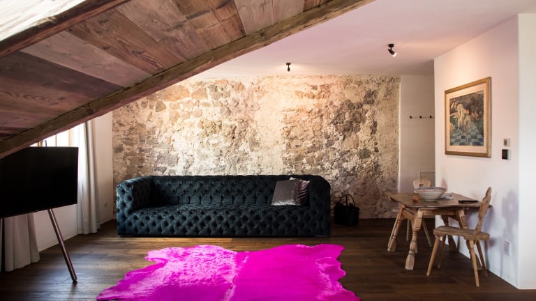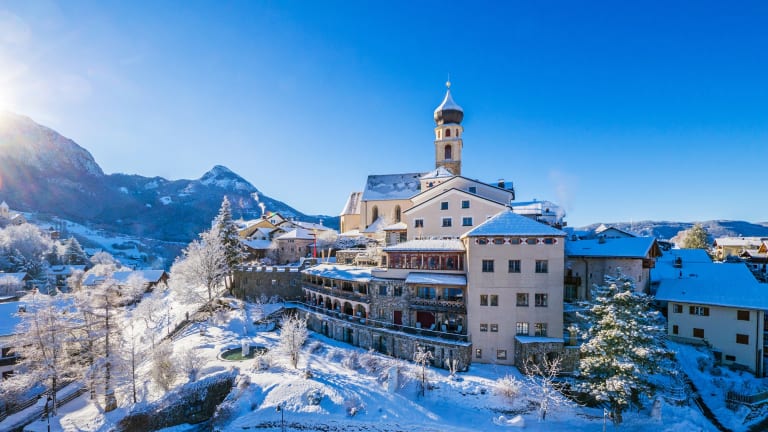 Das Romantik Hotel Turm liegt im Zentrum von dem Dorf Völs, direkt am Fuße des Schlern.